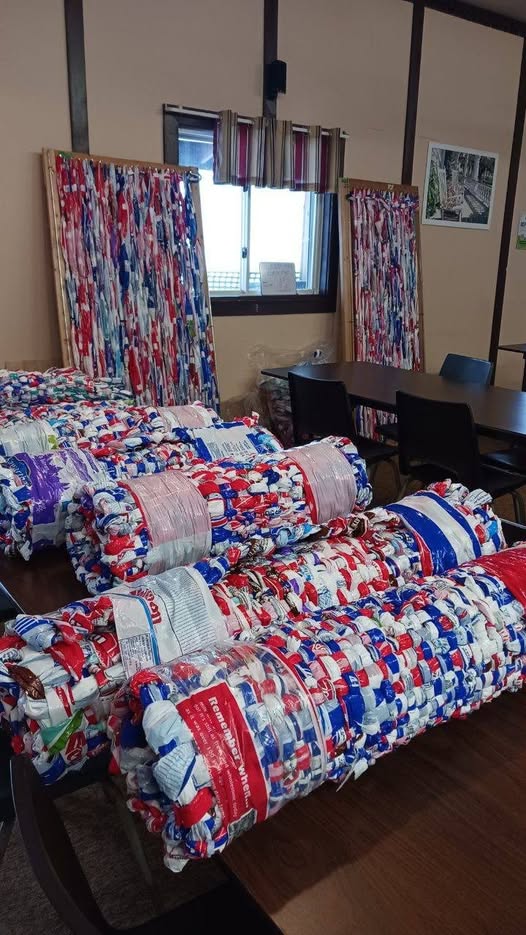 Milk bag mats galore! The amazing Beaver Ridge volunteers have been hard at work. 3 mats have already been given away to those needing them over the winter, along with 2 more previously ‘in stock’.